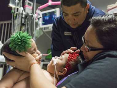 ह्यूस्टन। अमेरिका के टेक्सास में सर्जनों की एक टीम ने सीने और पेट से जु़ड़ी 10 माह की बच्चियों को सफलतापूर्वक ऑपरेशन कर अलग कर दिया साथ ही दोनों को जीवित रखने में कामयाबी हासिल की है। ह्यूस्टन शहर स्थित टेक्सास चिल्ड्रन हॉस्पिटल में बीते हफ्ते 12 सर्जन, छह एनेस्थेसियोलॉजिस्ट,आठ सर्जिकल नर्सेस की टीम ने 26 घंटे तक चले ऑपरेशन को सफल बनाया।इसे दुनिया की सबसे पहली जटिल सर्जरी बताया जा रहा है। फिलहाल दोनों बच्चियों को आईसीयू में रखा है और दोनों की सेहत में तेजी से सुधार हो रहा है।नटाले होप और एडेले फेट माता नाम की दोनों बच्चियों का जन्म बीते साल हुआ था। दोनों पेट और सीने से इतने जटिल तरीके से जु़ड़ी थीं कि अलग करने के ऑपरेशन के दौरान जान जाने का खतरा था। बच्चियों की मां एलिस ने सर्जरी करने वाली टीम को धन्यवाद देते हुए कहा कि वे उम्मीद हार चुकी थी लेकिन डॉक्टर्स ने करिश्मा कर दिया।