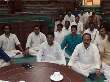 भोपाल। ओला और बारिश से किसानों के हुए नुकसान को लेकर नेता प्रतिपक्ष सत्यदेव कटारे ने कहा कि उनका विधानसभा में धरना जारी रहेगा। आज से सात विधायकों की भूख हड़ताल ने पूरे विधायक दल में बदल गई और सभी कांग्रेसी एमएलए ने आज से अन्न त्याग दिया है। कांग्रेस पार्टी का जिला और ब्लॉक स्तर पर आंदोलन आज दोपहर मुख्यमंत्री के पुतला दहन के रूप में होगा।किसानों के मुद्दे को लेकर विधानसभा के एक दिवसीय विशेष सत्र की रात से सदन के अंदर शुरू हुआ कांग्रेस का धरना आज तीसरे दिन भी जारी है। नेता प्रतिपक्ष कटारे ने आज सुबह ऐलान किया कि धरना जब मांगे पूरी नहीं हो जाती तब तक जारी रहेगा। उन्होंने बताया कि सात विधायकों के आज से भूख हड़ताल पर बैठने का ऐलान किया गया था लेकिन सभी साथियों ने आज से अन्न त्याग दिया है।वहीं गृह मंत्री बाबूलाल गौर धरने पर बैठे कांग्रेसी विधायकों से मुलाकात करने आज सुबह विधानसभा पहुंचे थे। उन्होंने कटारे के स्वास्थ्य के हालचाल पूछे और कहा आंदोलन करो लेकिन अपनी सेहत का भी ध्यान रखो।विधायकों ने त्यागा अन्न, जारी रहेगा धरना जारी ..