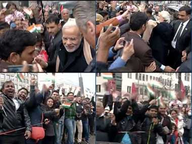 बर्लिन । प्रधानमंत्री नरेंद्र मोदी जर्मनी दौरे के दौरान बर्लिन पहुंचे हैं। भारतीय समर्थकों ने मोदी का गर्मजोशी से स्वागत किया। लोगों में मोदी को देखने का जबरदस्त उत्साह दिखा। मोदी जैसे ही बर्लिन के एअरपोर्ट पहुंचे वहां इंतजार कर रहे तमाम समर्थकों ने मोदी के समर्थन में नारे लगाए। पीएम ने कहा कि भारतीयों में अलग तरीके से सोचने की शक्ति है।इस दौरान गुजरात से आए कुछ लोगों ने कहा कि मोदी उनके राज्य से हैं और वे उनका स्वागत करने के लिए आए हैं। इस दौरान एक समर्थक ने कहा कि हम उस इंसान से मिलने आए हैं जो भारत को बदलने जा रहा है।यहां प्रवासी भारतीयों को संबोधित करते हुए पीएम मोदी ने विकास का फंडा रखा। पीएम ने कहा, 'कृषि, निर्माण और सर्विस सेक्टर में संतुलन बनाकर भारत विकास के पथ पर आगे बढ़ सकता है।' पीएम ने कहा कि 'हमारे देश के लोग विदेश जाकर गूगल और तमाम बड़ी कंपनियों में काम करते हैं. मैं पूछता हूं कि गूगल हमारे यहां क्यों नहीं पैदा हुआ? हिंदुस्तान मैनुफैक्चरिंग हब बन सकता है. भारत में कम खर्च में निर्माण कूवत है।'बर्लिन पहुंचने के बाद मोदी ने सीमेंस टेक्निकल एकेडमी का दौरा किया। यहां मोदी ने विद्यार्थियों से उनके कार्यों के बारे में उनकी बातें सुनीं। पीएम ने जर्मनी के वाइस चांसलर सिगमार गाब्रिएल से भी मुलाकात की। सिगमार सोशल डेमोक्रेटिक पार्टी (एसपीडी) के अध्यक्ष एवं जर्मनी के आर्थिक और ऊर्जा मंत्री भी हैं।